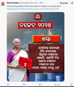 ନୂଆଦିଲ୍ଲୀ (ବଡ଼ ଖବର ବ୍ୟୁରୋ): ସଂସଦରେ ଉପସ୍ଥାପିତ ହେଲା ମୋଦି ସରକାରଙ୍କ ତୃତୀୟ ପାଳିର ପ୍ରଥମ ପୂର୍ଣ୍ଣାଙ୍ଗ ବଜେଟ୍। ୨୦୨୫-୨୬ ଆର୍ଥିକ ବର୍ଷ ପାଇଁ ବଜେଟ୍ ପେଡି ଖୋଲିଲେ ଅର୍ଥମନ୍ତ୍ରୀ ନିର୍ମଳା ସୀତାରମଣ। ଲୋକସଭାରେ ବଜେଟ୍ ଅଭିଭାଷଣ ରଖିଲେ ଅର୍ଥମନ୍ତ୍ରୀ। ତେବେ ବଜେଟରେ ସବୁଠୁ ବଡ ଘୋଷଣାକୁ ଅପେକ୍ଷା କରିଥାନ୍ତି ସବୁ ବର୍ଗର ଲୋକେ । ତାହା ହେଉଛି କ’ଣ ଶସ୍ତା ଆଉ କ’ଣ ମହଙ୍ଗା ହେବ। ଲୋକଙ୍କ ଏହି ଅପେକ୍ଷାକୁ ଭରଣା କରିଛନ୍ତି ସୀତାରମଣ। ଏନେଇ କରିଛନ୍ତି ବଡ ଘୋଷଣା।
