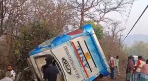 ନୟାଗଡ଼ (ବଡ଼ ଖବର ବ୍ୟୁରୋ): ବ୍ରହ୍ମପୁରରୁ ବଲାଙ୍ଗୀର ହରିଶଙ୍କର ବୁଲି ଯିବାବେଳେ ମର୍ମନ୍ତୁଦ ଦୁର୍ଘଟଣା। ନୟାଗଡ଼ ୫୭ ନମ୍ବର ଜାତୀୟ ରାଜପଥ ଟାକରା ନିକଟରେ ଭାରସାମ୍ୟ ହରାଇ ରାସ୍ତା କଡ଼କୁ ଓଲଟିଲା ଟୁରିଷ୍ଟ ବସ୍। ଡ୍ରାଇଭର୍ ସମେତ ୫ ମୃତ, ୪୫ରୁ ଉର୍ଦ୍ଧ୍ଵ ଆହତ। ସମସ୍ତ ମୃତାହତ ବ୍ରହ୍ମପୁର ଅଞ୍ଚଳର ହୋଇଥିବା ସୂଚନା। ବିଳମ୍ବିତ ରାତି ୧ ଟାରେ ଏହି ଦୁର୍ଘଟଣା ଘଟିଛି। ସୂଚନାନୁଯାୟୀ, ବ୍ରହ୍ମପୁର ଅଞ୍ଚଳର ପ୍ରାୟ ୫୫ ଜଣ ଯାତ୍ରୀ ଏକ ବସ୍ ରେ ବଲାଙ୍ଗୀରର ହରିଶଙ୍କର ବୁଲି ଯାଉଥିଲେ।