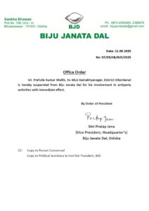 ଭୁବନେଶ୍ୱର (ବଡ଼ ଖବର ବ୍ୟୁରୋ): ବିଜେଡିରୁ ନିଲମ୍ୱିତ ହେଲେ ପ୍ରଫୁଲ ମଲ୍ଲିକ । ଦଳ ବିରୋଧୀ ମନ୍ତବ୍ୟ ପାଇଁ କରାଗଲା ନିଲମ୍ୱିତ । ବିଜୁ ଜନତା ଦଳ ପକ୍ଷରୁ ପ୍ରେସ୍ ରିଲିଜ୍ ଜାରି । ପୂର୍ବତନ ମନ୍ତ୍ରୀ ତଥା ବରିଷ୍ଠ ନେତା ପ୍ରଫୁଲ୍ଲ ମଲ୍ଲିକ । ବିଜେଡି ସଭାପତିଙ୍କ ନିର୍ଦ୍ଦେଶରେ ଏଭଳି କାର୍ଯ୍ୟାନୁଷ୍ଠାନ ଗ୍ରହଣ କରାଯାଇଥିବା ନେଇ ଉପସଭାପତି ପ୍ରତାପ ଜେନାଙ୍କ ଏକ ଚିଠି ଜରିଆରେ ଗଣମାଧ୍ୟମକୁ ସୂଚନା ଦିଆଯାଇଛି। ବରିଷ୍ଠ ନେତା ତଥା ପୂର୍ବତନ ମନ୍ତ୍ରୀ ପ୍ରଫୁଲ୍ଲ ମଲ୍ଲିକ ବି ଦଳ ବିରୋଧରେ ନିୟମିତଭାବେ ଅସନ୍ତୋଷ ଝାଡ଼ିଚାଲିଥିଲେ।